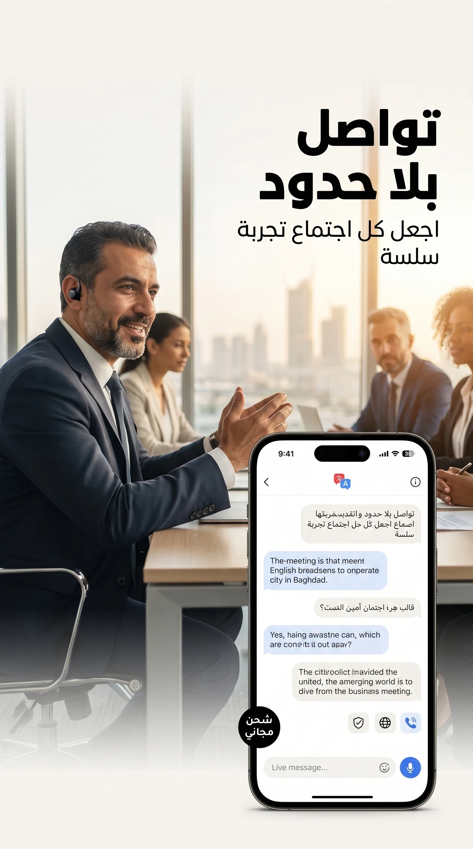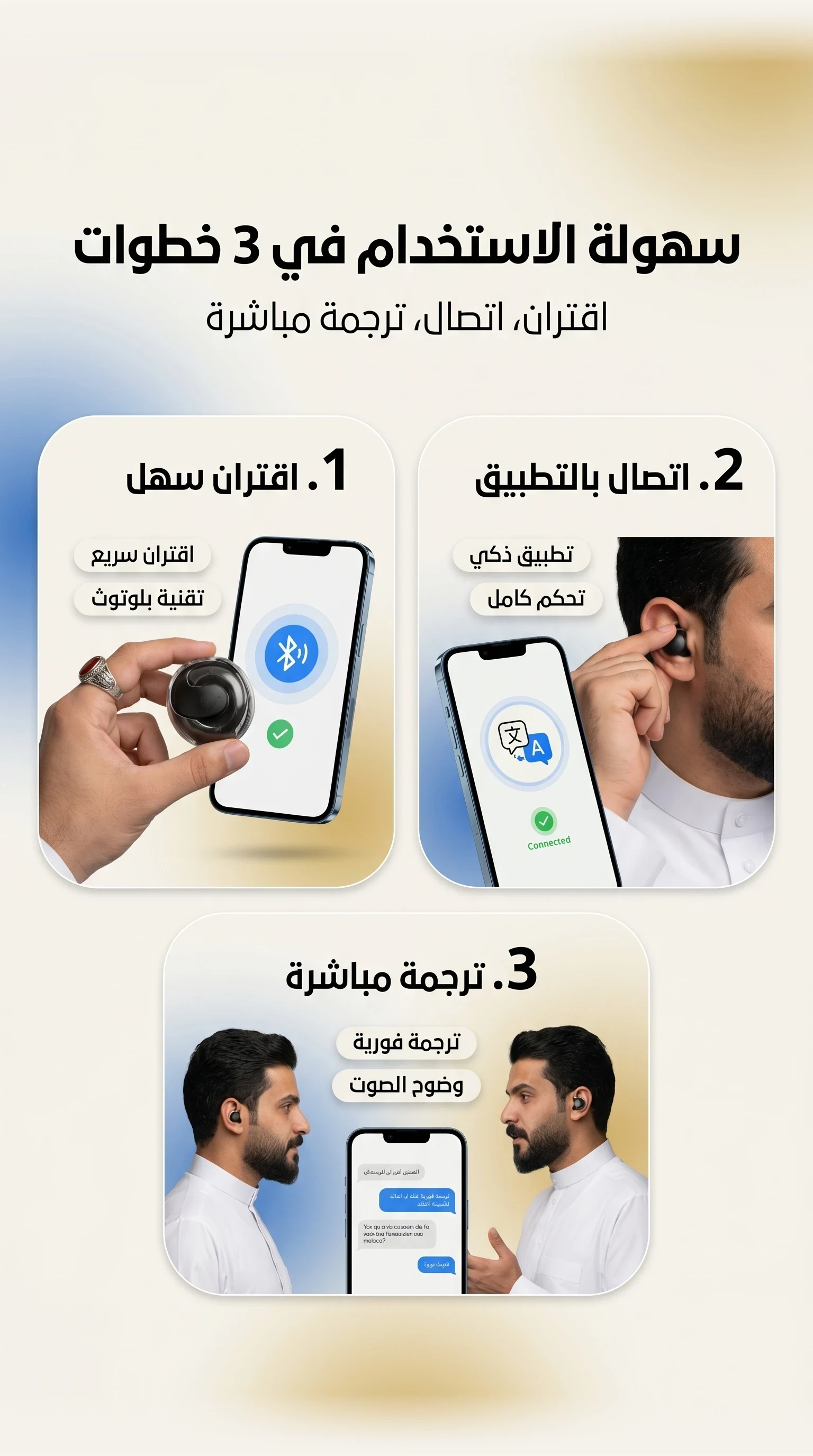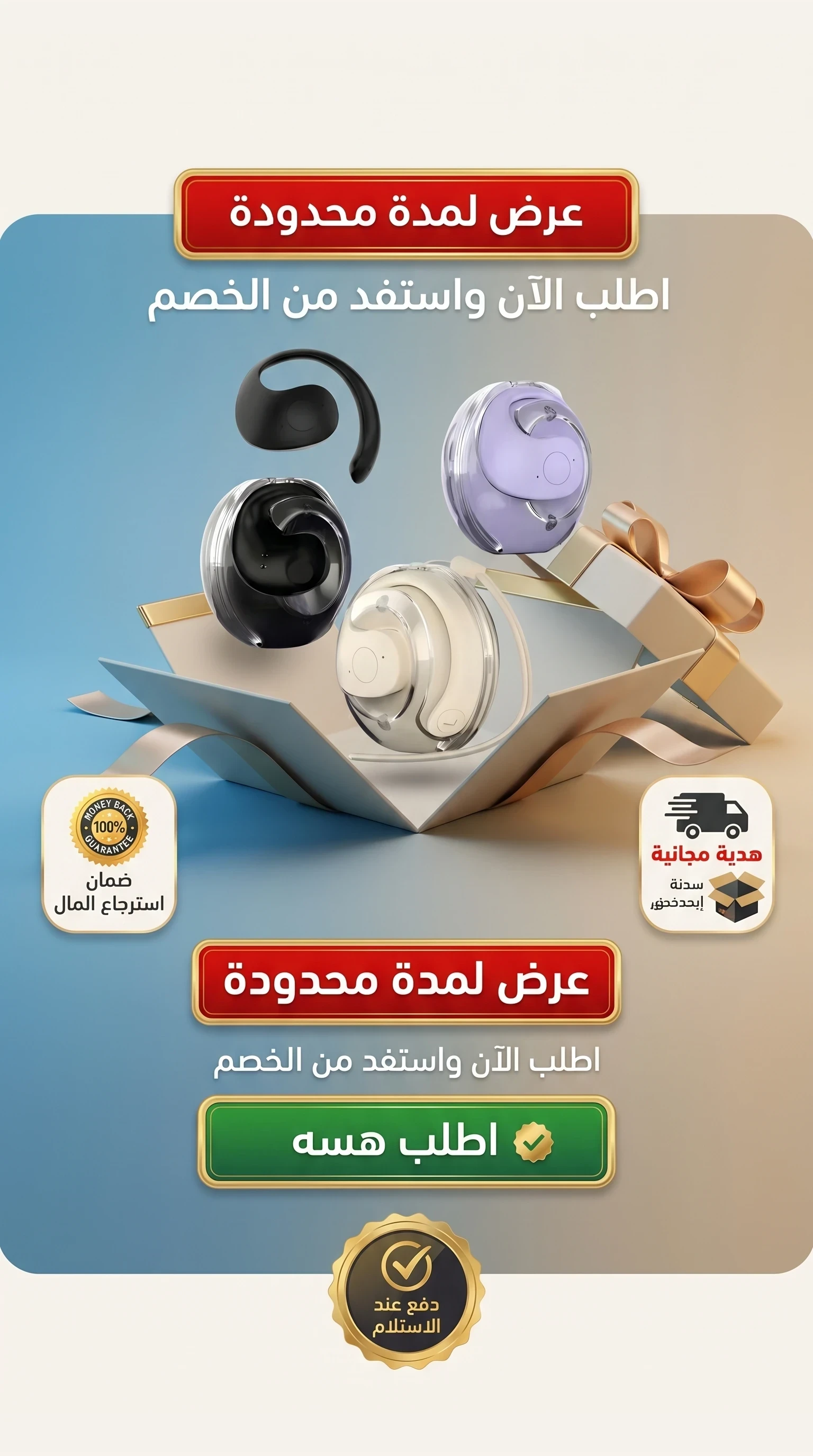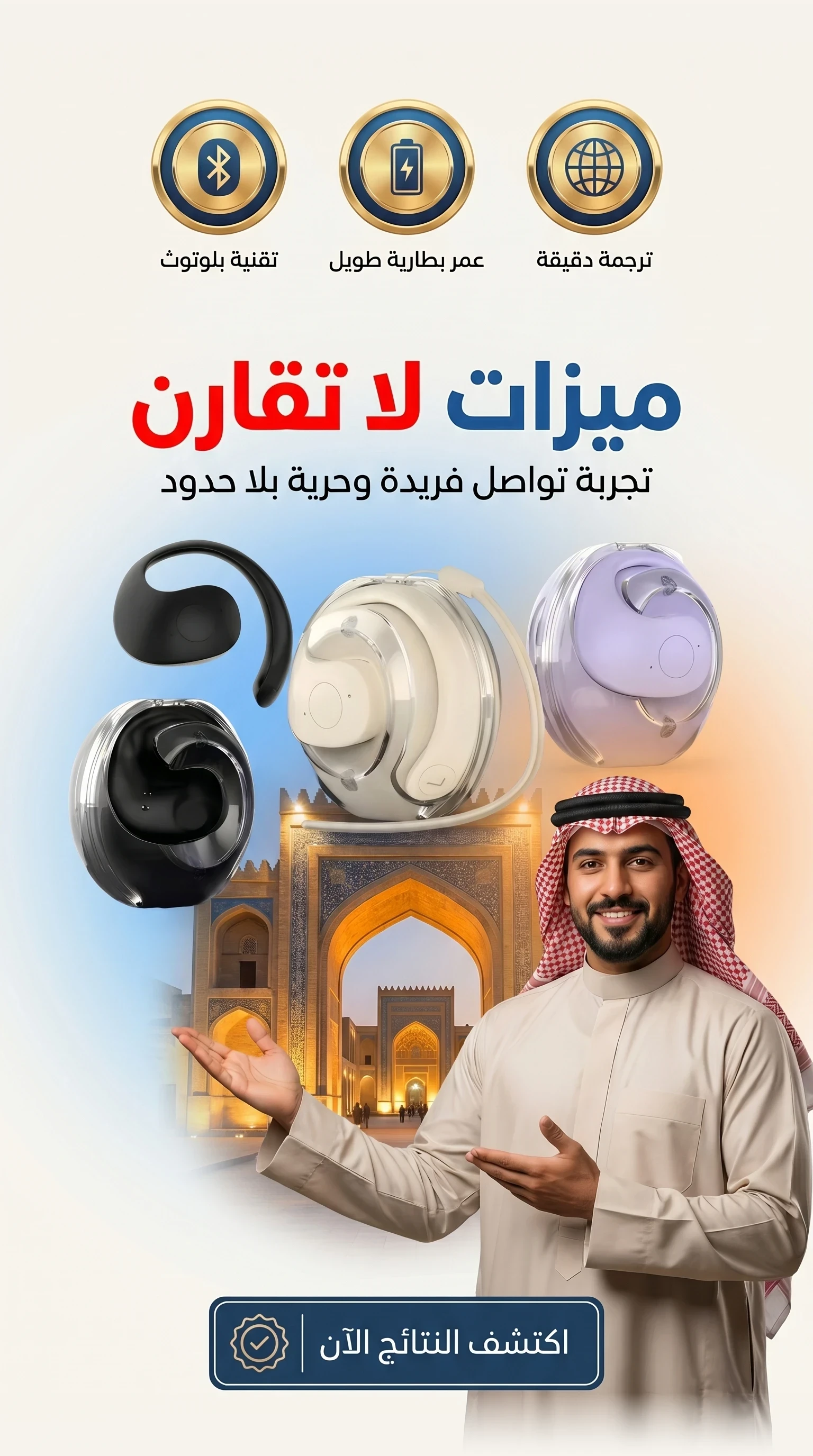 ايربودز الترجمة الذكية تنقل كلامك فوراً وتساعدك تفهم الطرف الثاني بدون ارتباك أو انتظار. مناسبة للسفر والعمل والدراسة والمكالمات اليومية مع أداء عملي وتصميم مريح. اطلبها اليوم مع توصيل سريع خلال 24-48 ساعة والدفع عند الاستلام في العراق مع ضمان استرجاع لمدة 14 يوم.